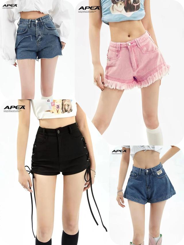 粉色短裤做旧毛边的设计违和却又不失美感 左上角短裤的设计就很独特小众了 比较新颖,在路上碰到 桃桃是肯定会多看几眼 并且还想要链接的那种