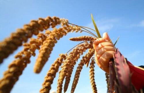 ↑ 村民在贵州省黔东南苗族侗族自治州从江县高增乡小黄侗寨晾晒稻谷。