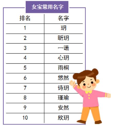 女孩名字荣登榜首的是“玥”,大约870个女孩中,就有一个取名为“玥”。
