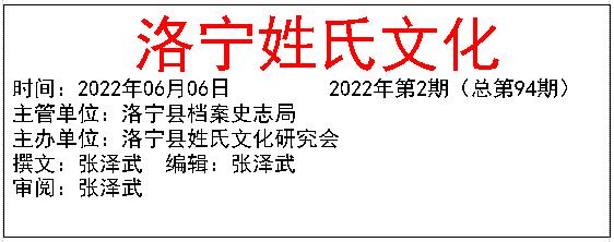 作者简介:张泽武,洛宁县陈吴乡新寨村人,2003年发起并组织成立了洛宁县姓氏文化研究会,任常务副会长兼秘书长。2006年参与组织筹备成立洛阳姓氏文化研究会,任副秘书长。2017年被推举为洛宁县姓氏文化研究会会长。